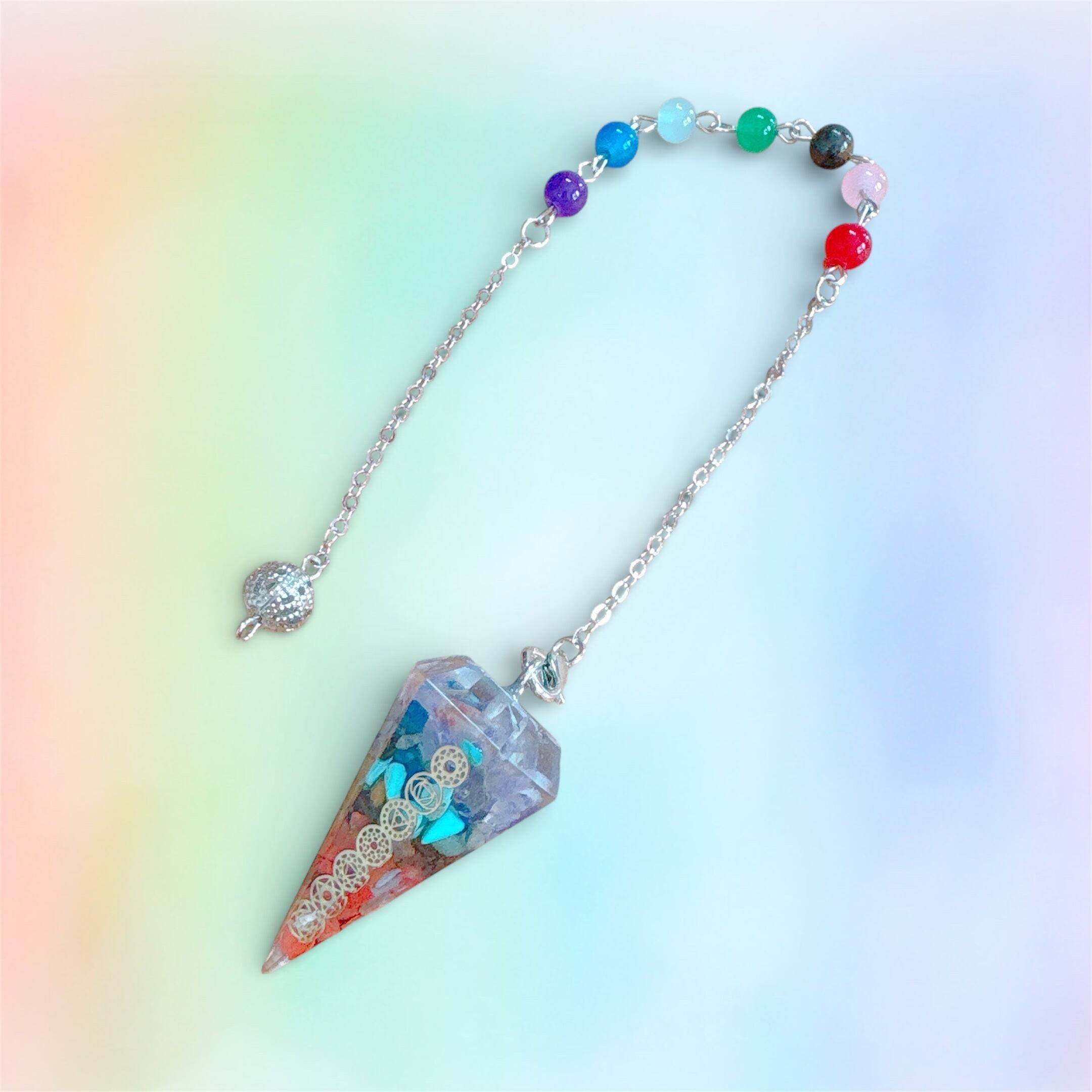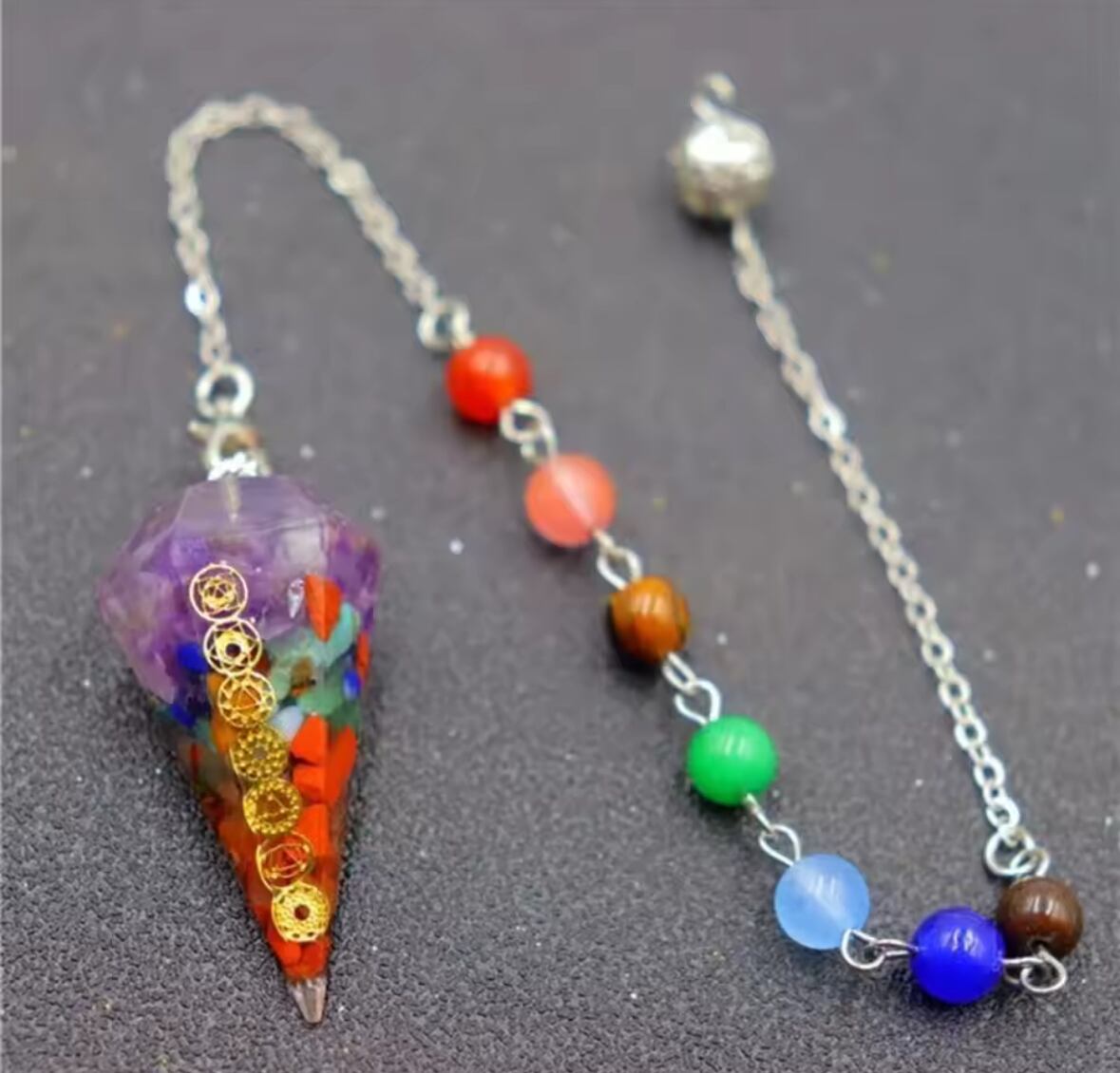 新品【ペンデュラム】チャクラ調整 7色オルゴナイト 天然石 振り子 ハンドメイド
